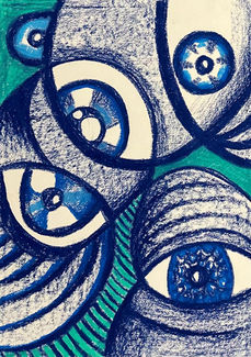 The artist thinks that the eyes have a connection with the soul and tries to show this connection strongly with the imagination by using bright and contrasting colors.