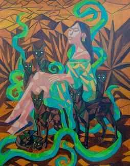 Ezequiel Enríquez is a distinguished visual artist whose work serves as a bridge between ancestral heritage and contemporary expression. He is the creator of the Neo-Mexicósmico style, a unique artistic fusion where figurative expressionism, cubist triangular geometry, and deep spiritual contexts converge.